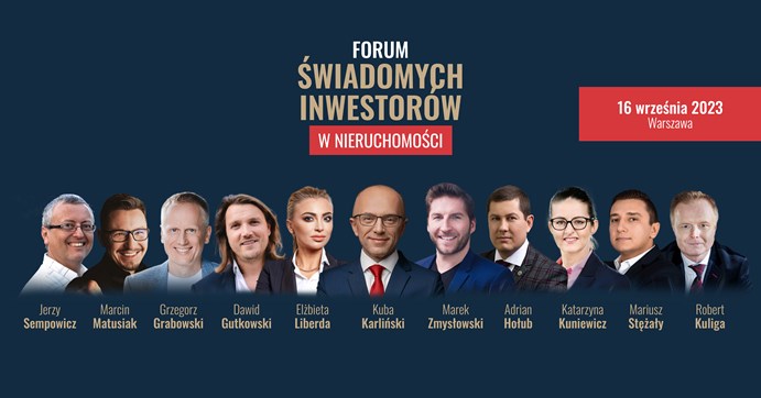 16 września w hotelu Airport w Warszawie odbędzie się konferencja Forum Świadomych Inwestorów w Nieruchomości. Organizator konferencji, Kuba Karliński, za cel postawił sobie podniesienie kompetencji uczestników i wniesienie nowego spojrzenia na to, co dzieje się aktualnie na rynku. To wyjątkowe wydarzenie w branży, gdzie w jednym miejscu spotkają się eksperci ze świata nieruchomości oraz praktycy inwestowania, aby wymienić się doświadczeniami i kontaktami. Zaproszeni do współtworzenia prelegenci to osoby świadome, że rozwój, wiedza i kontakty to kluczowe czynniki skutecznego inwestowania. Bilety na konferencję oraz pełne informacje dotyczące wydarzenia dostępne są na stronie inwestorium.pl.